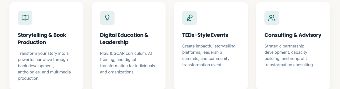 Empowering women and organizations through storytelling, leadership development, and digital transformation to create lasting global impact.
